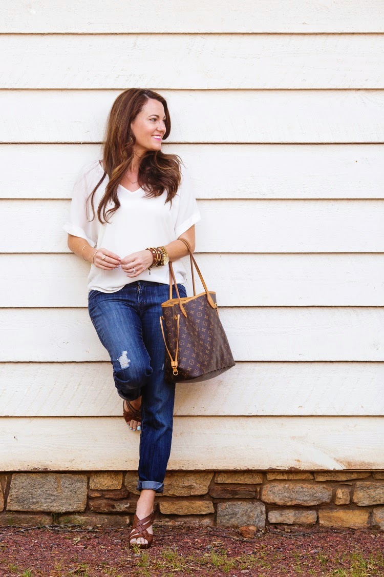 With summer around the corner, my wardrobe choices tend to be a bit more laid back. I find myself reaching for my distressed boyfriend jeans more and more because they are so comfortable and easy to style. I also love this top from Nordstrom, and I may have to go back and order it in every color! I’ve seriously worn it a ton since purchasing it.